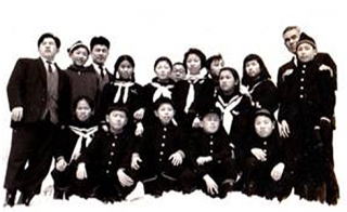 | 6年2組卒業時 田中先生(左端)と生徒(一部) |