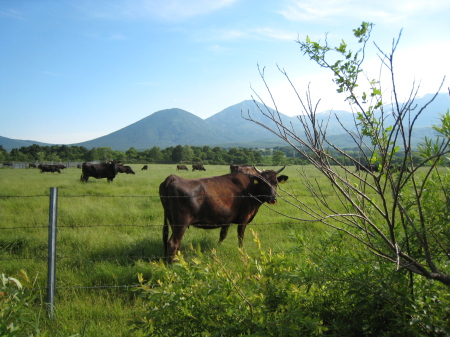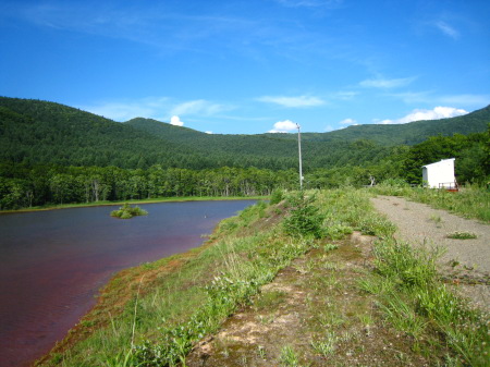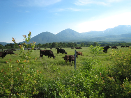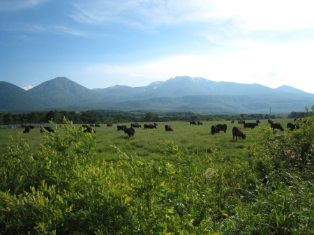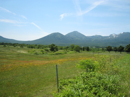 | ダムまで2km若い方なら30分で行ける距離ですが 私は、湊先生に歩を合わせ、八甲田の雄大な景色と 放牧地の緑と野花を楽しみながら、ゆっくりと歩きました |
