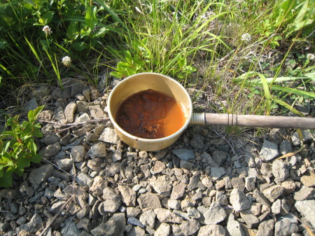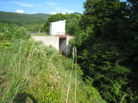 | 田代ダムに到着すると、若い先生方は長い土堰堤の上を熱心に歩き回り ダムのサンプル等集めて、水門や関連施設の写真を撮っていました 遅れて到着した、私に、いろいろと質問が飛びましたが 私は現地への案内役ですが、設備については全くわからないので コメントは控えさせていただきました(^^) |