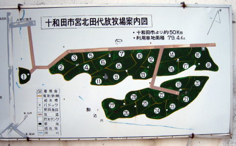 ただしこの砂利道は、50m進んだ所に立ち入り禁止のバリケードがあり、 砂利道の左側は、十和田市が管理する、牛馬の放牧地が続きます |