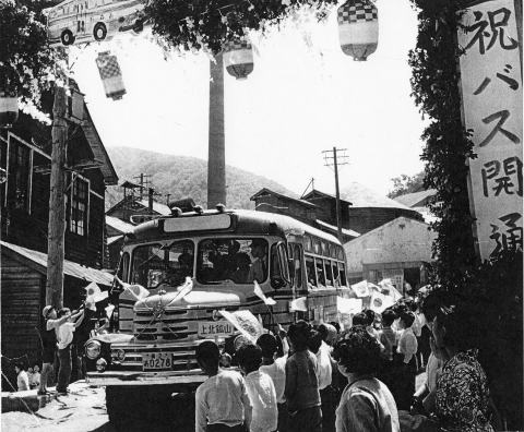 | 昭和34年7月 | バス上北鉱山、元山へ、開通 所要時間2時間 青森発、 8:30 13:00 17:00 坪川発 8:30 13:00 17:00 山内停留所 坪川→立石→事務所→供給所→中の沢→上の沢→奥の沢 |