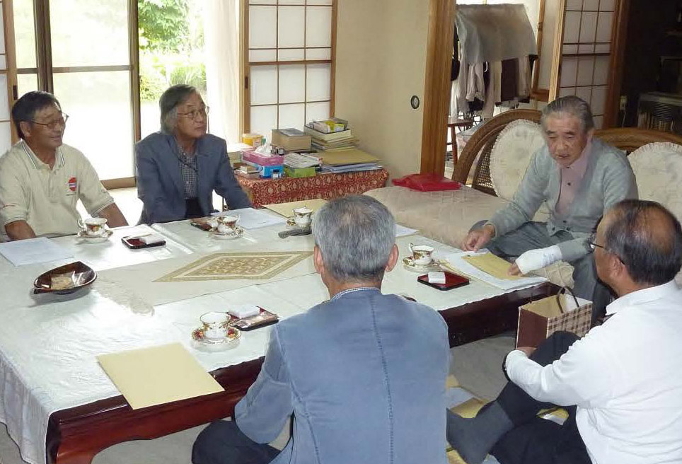 | 田中先生 ご夫妻 お宅は平屋の広大な和風建築で、松やカエデ、ツツジなど庭木が立派。百日紅が満開だった。 |